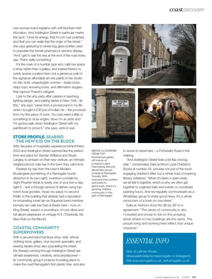 A profile of Addington Street in Ramsgate for Coast Magazine TravelTravel (editorial)SustainabilityLifestyleUKLifestyle/art/culture (editorial) 10 Nov Written By Lucy Shrimpton Lucy Shrimpton